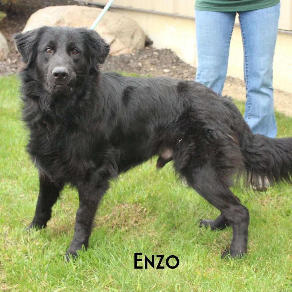 Enzo is a 10 month old male Golden Retriever / Shepherd mix that came to us when he was spending far too much time in a crate and a baby was on the way. He is learning to walk on a leash and is working very hard on not jumping up on people. But it is all good natured & he has never shown an ounce of aggression. He is just all puppy! His new family will have to be committed to continuing to work o